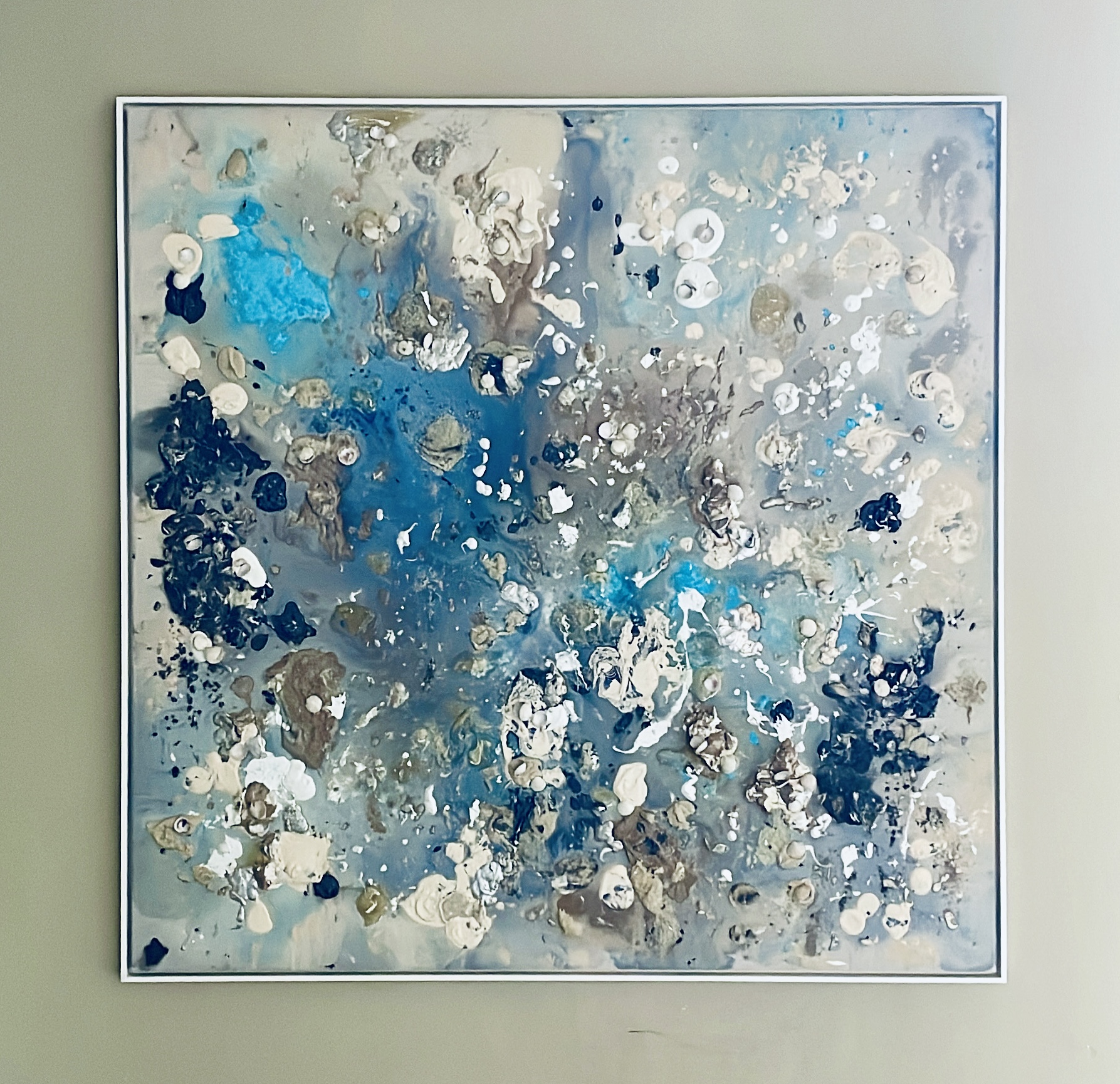 Material: Acrylic and mussels on linen framed